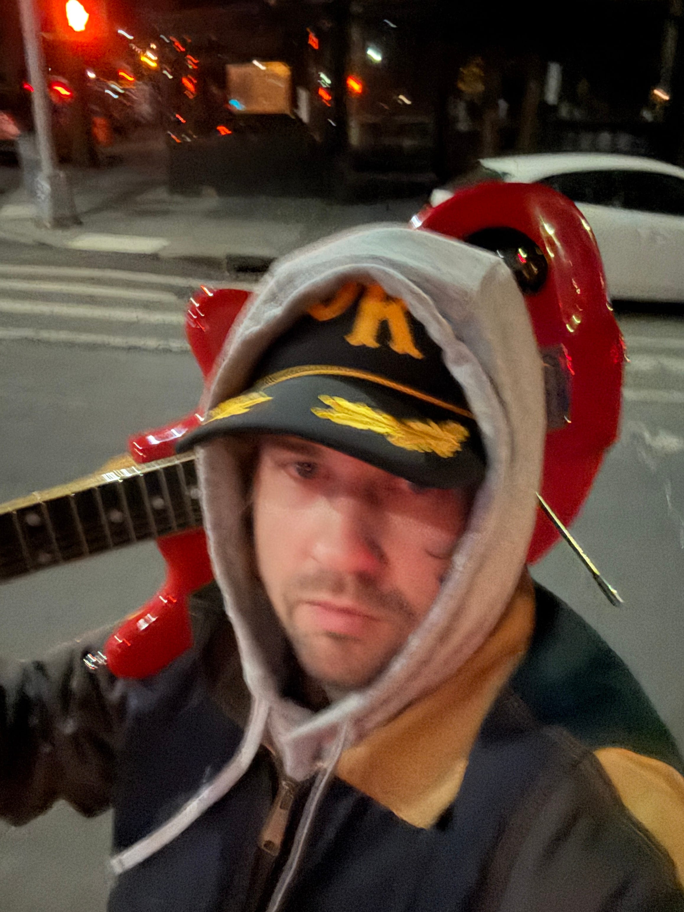 Clay searched around the back but couldn’t come up with a cable so alas we didn’t get to plug it in but that’s okay. The night was still perfect, getting to walk around New York City carrying a guitar over my shoulder that once belonged to one of my heroes and, without a doubt, one of the greatest guitarists of all time. In fact, remembering it all now, maybe the guitar felt less like an axe over my shoulder and more like proudly flying a flag. A flag that read:
